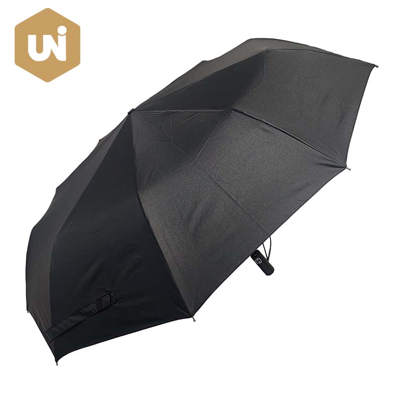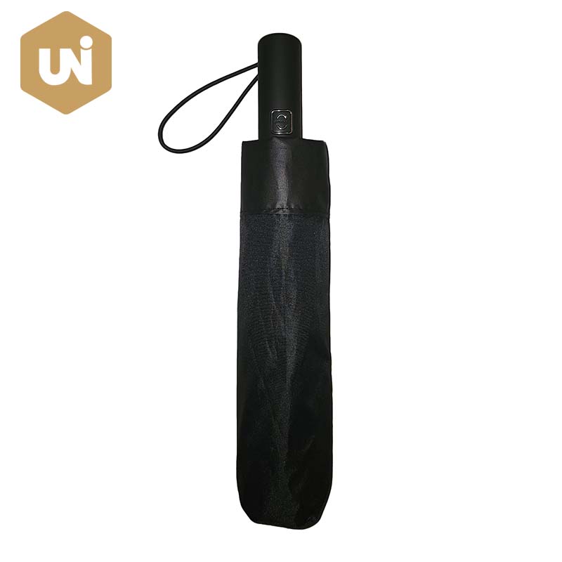Parapluie pliant à ouverture et fermeture automatique Gent Deux dernières baleines en fibre de verre et manche en métal, manche en plastique, tissu imprimé enduit noir pongé |